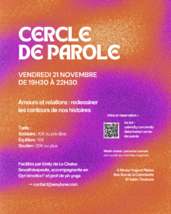 Mouna Yoga, c’est des cours hebdomadaires, mais aussi des activités à découvrir le weekend. Du Qi-gong aux différentes méditations en passant par la sophrologie et les constellations familiales, nos professeurs invités vous font voyager à travers les cultures, votre corps, votre esprit et votre histoire.